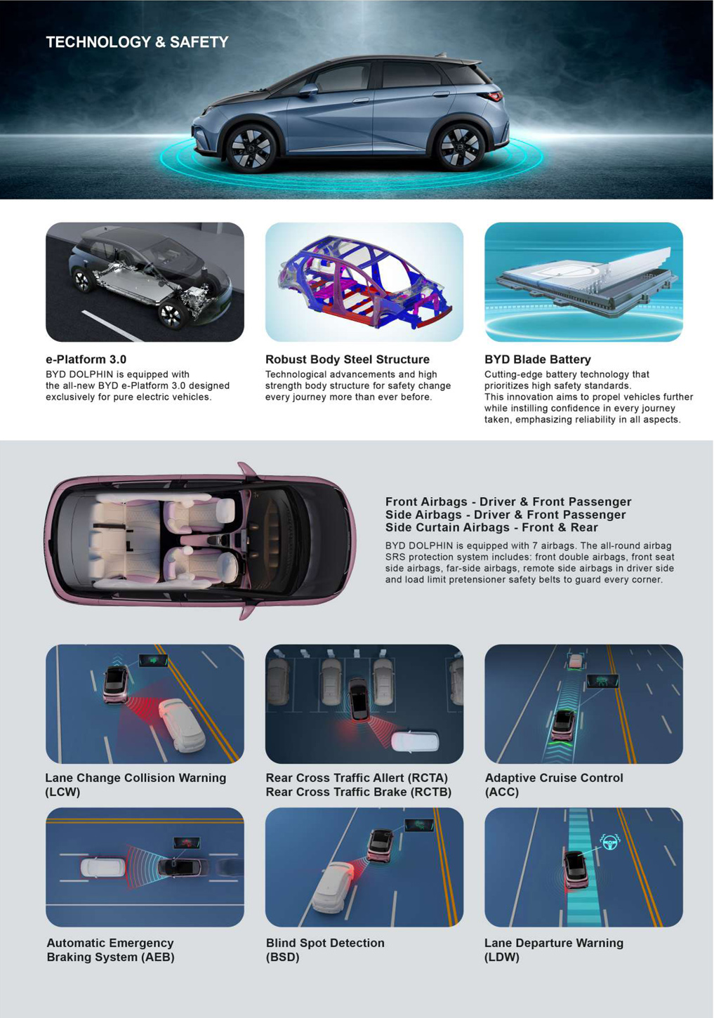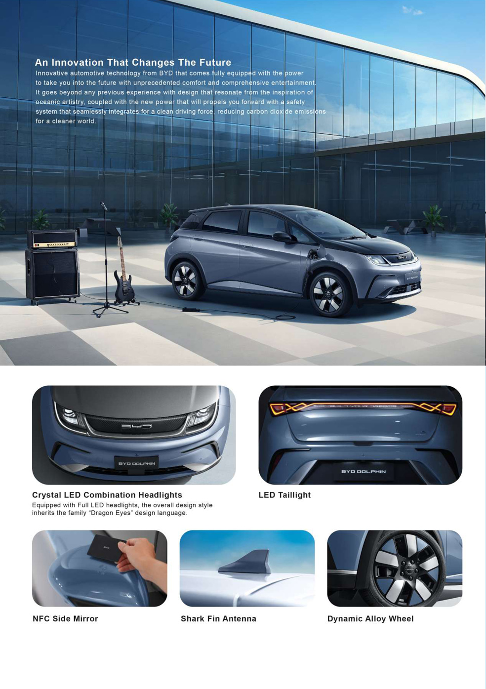 BYD DOLPHIN mengadopsi konsep desain baru 'Estetika Laut'. Garis bodi yang canggih, dipadukan dengan garis-garis tajam dan kontur yang mengalir, memproyeksikan desain yang percaya diri dan elegan yang ditopang oleh daya listrik bertenaga. Nikmati kebebasan dengan BYD DOLPHIN.