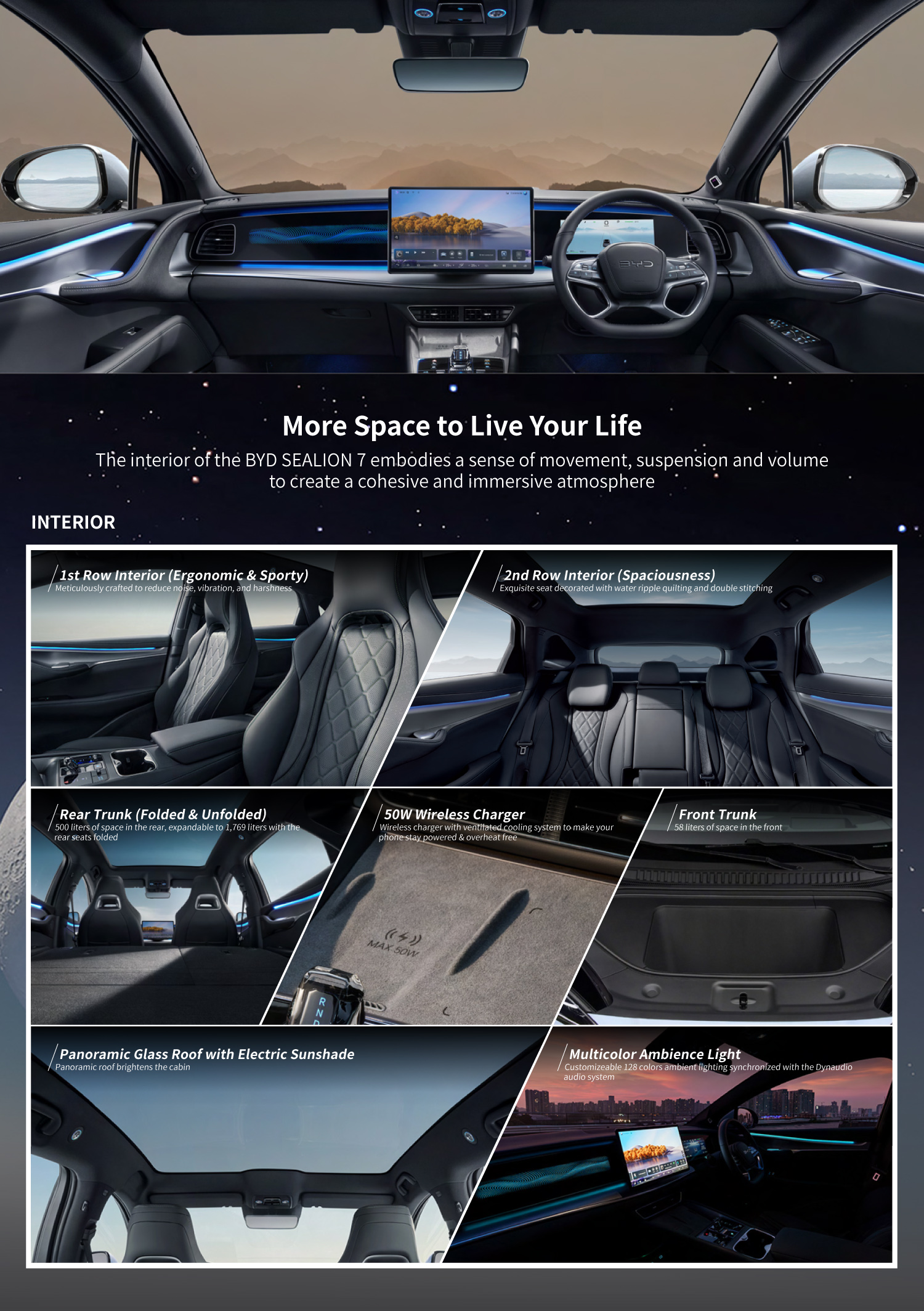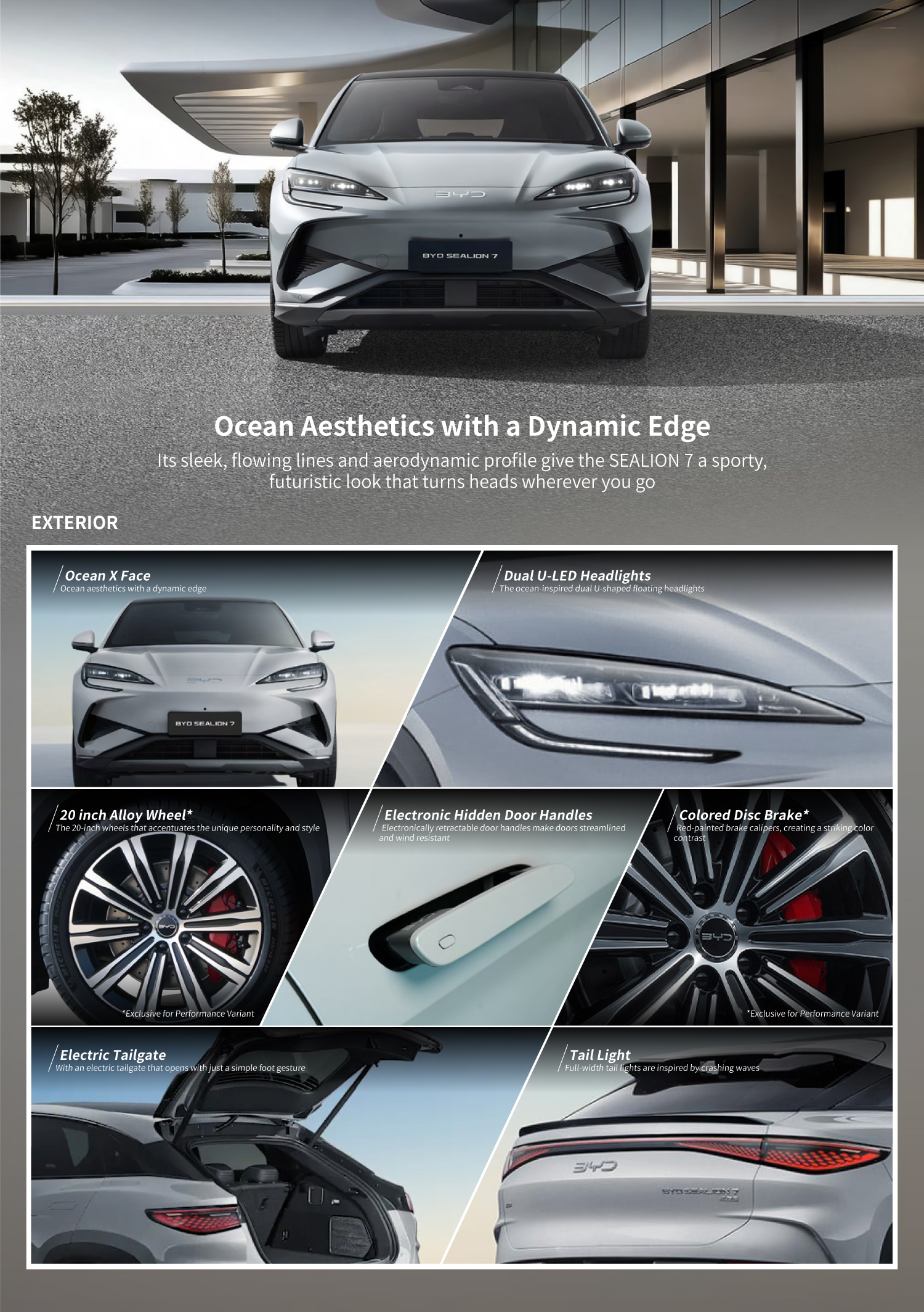 Estetika Laut dengan Sentuhan Dinamis. Garis-garisnya yang ramping dan mengalir serta profil aerodinamis memberikan SEALION 7 tampilan sporty dan futuristik yang menarik perhatian ke mana pun Anda pergi.